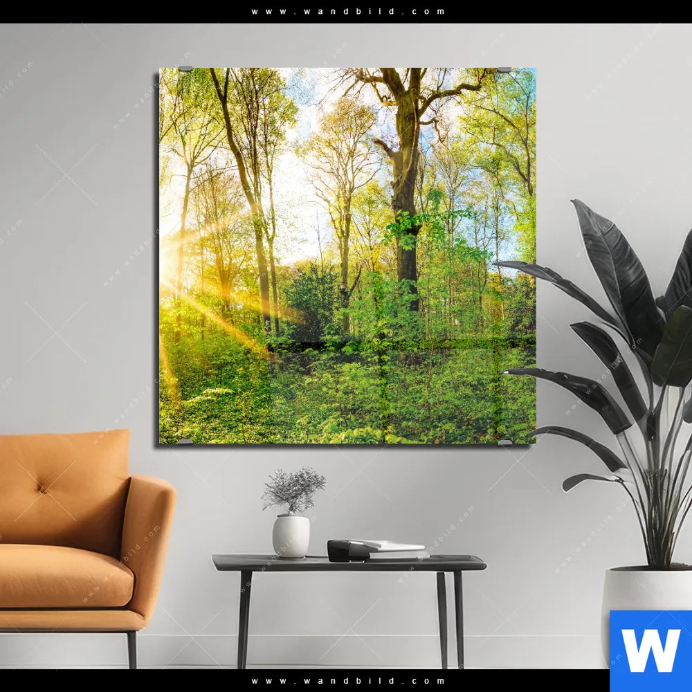 Acrylglasbild | Sonnenlicht im Wald | Quadrat