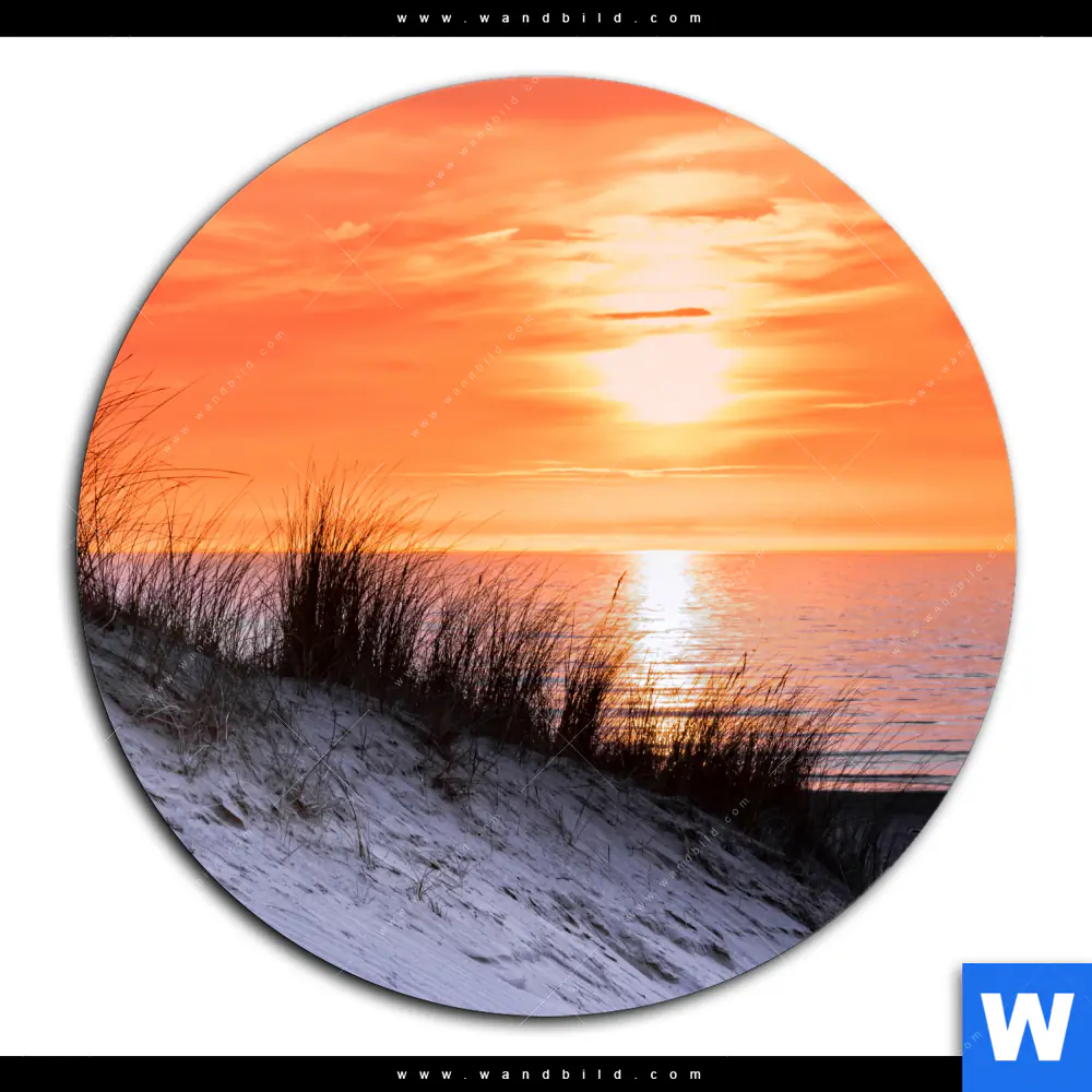 Acrylglasbild | Sonnenuntergang mit Düne und Meer | Rund