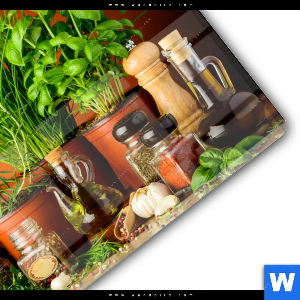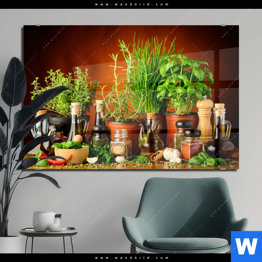 Acrylglasbild | Stillleben mit mediterranen Kräutern | Querformat