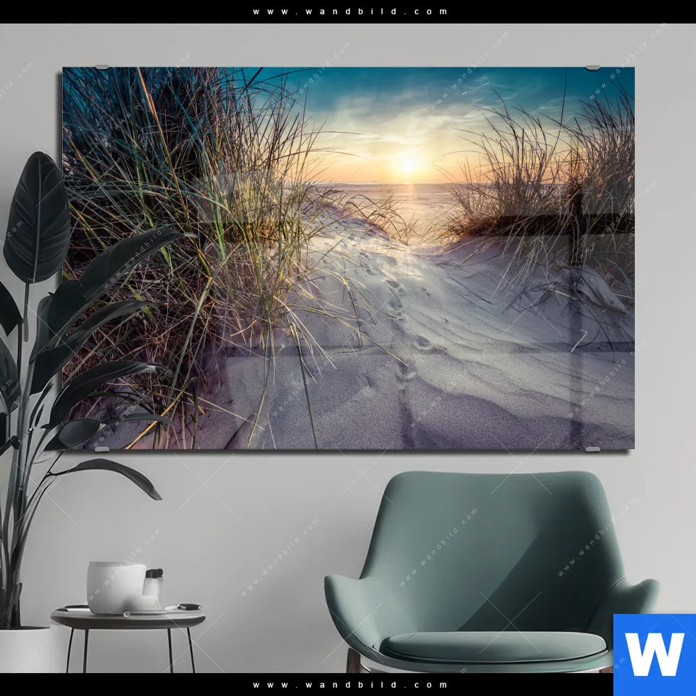 Acrylglasbild | Strandlandschaft mit Gras | Querformat