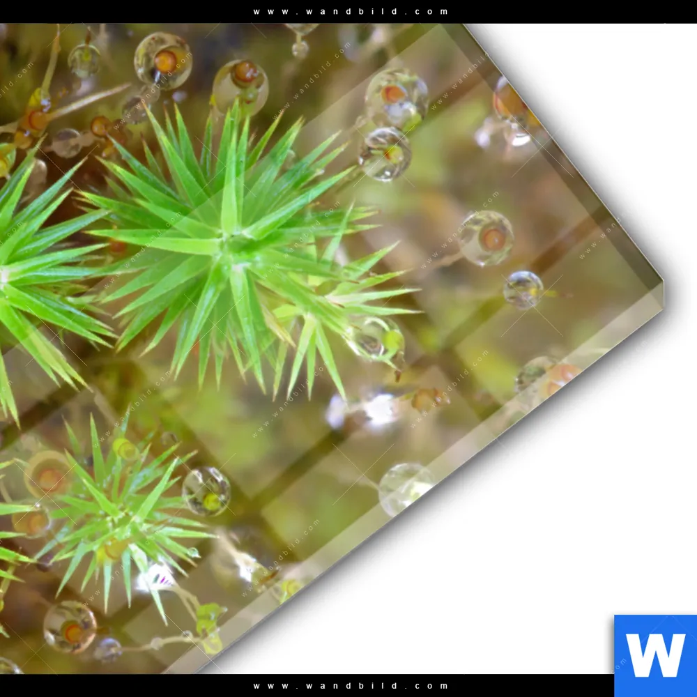 Acrylglasbild | Tautropfen auf Moos | Hochformat