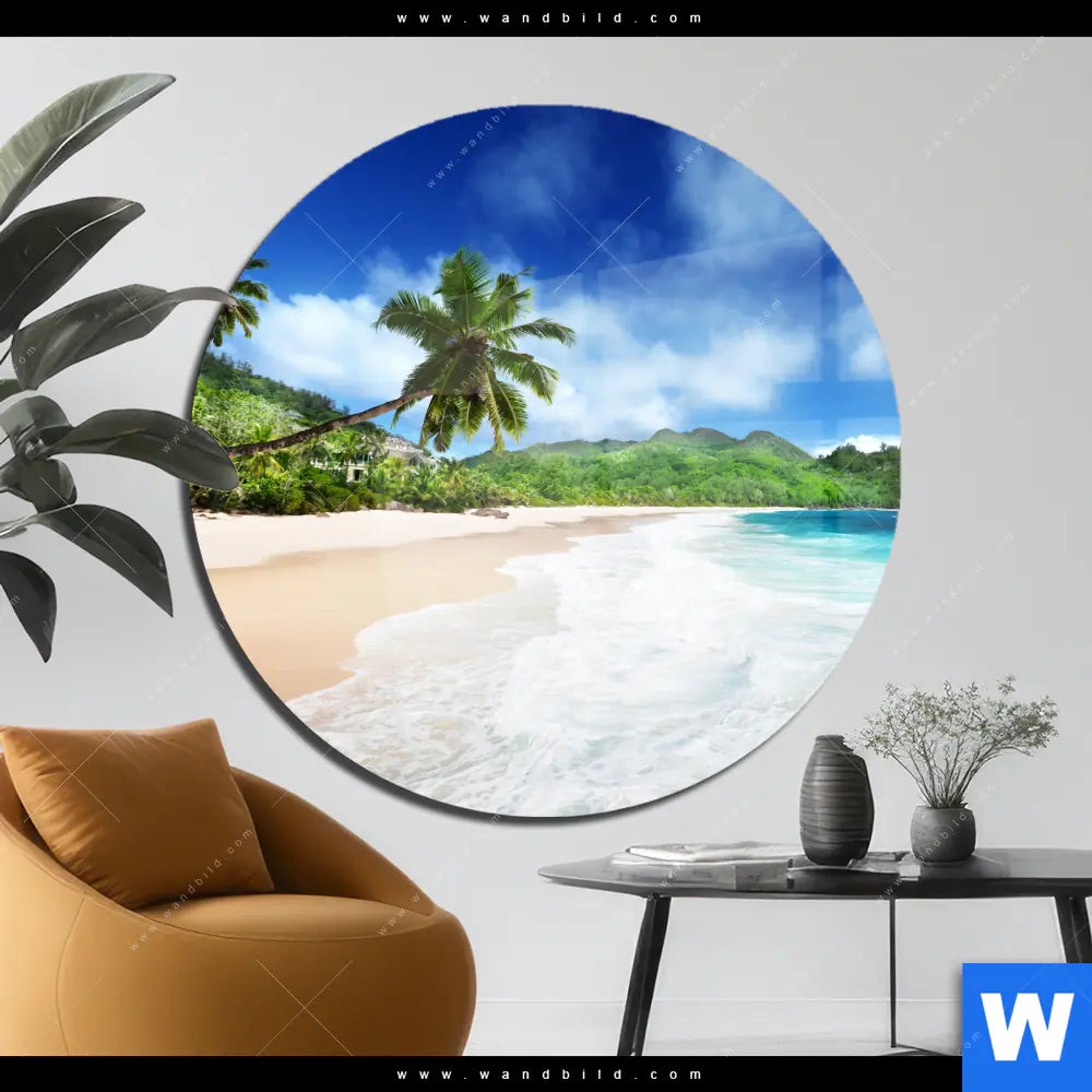 Acrylglasbild | Traumstrand unter Palmen | Rund