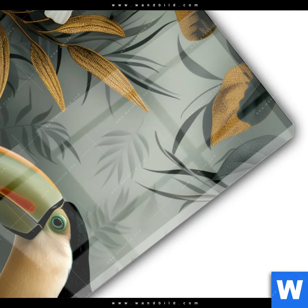 Acrylglasbild | Tukan im goldenen Regenwald | Hochformat