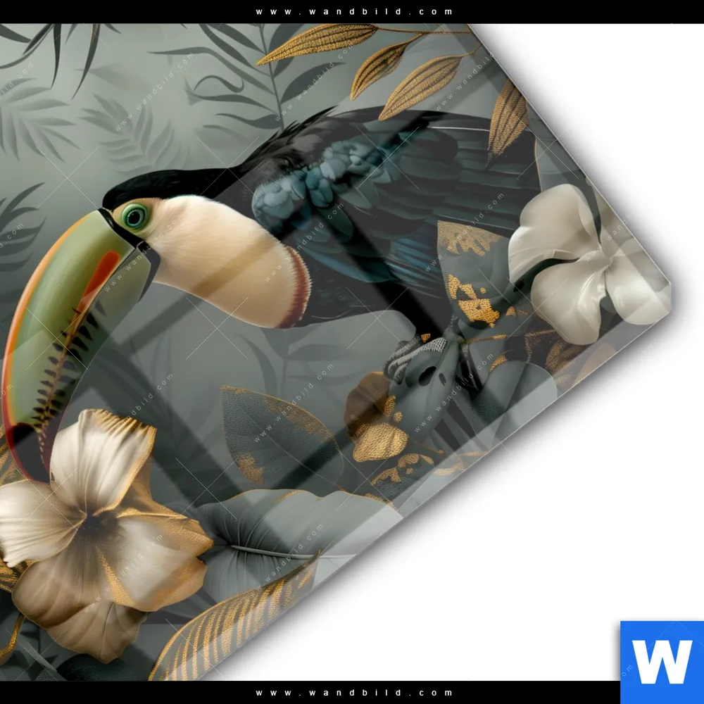 Acrylglasbild | Tukan im goldenen Regenwald | Quadrat