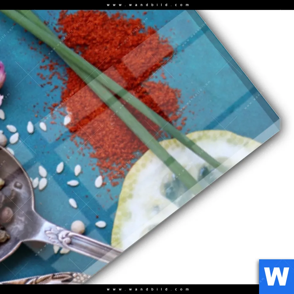 Acrylglasbild | Vintage Silberlöffel mit Gewürzen | Panorama