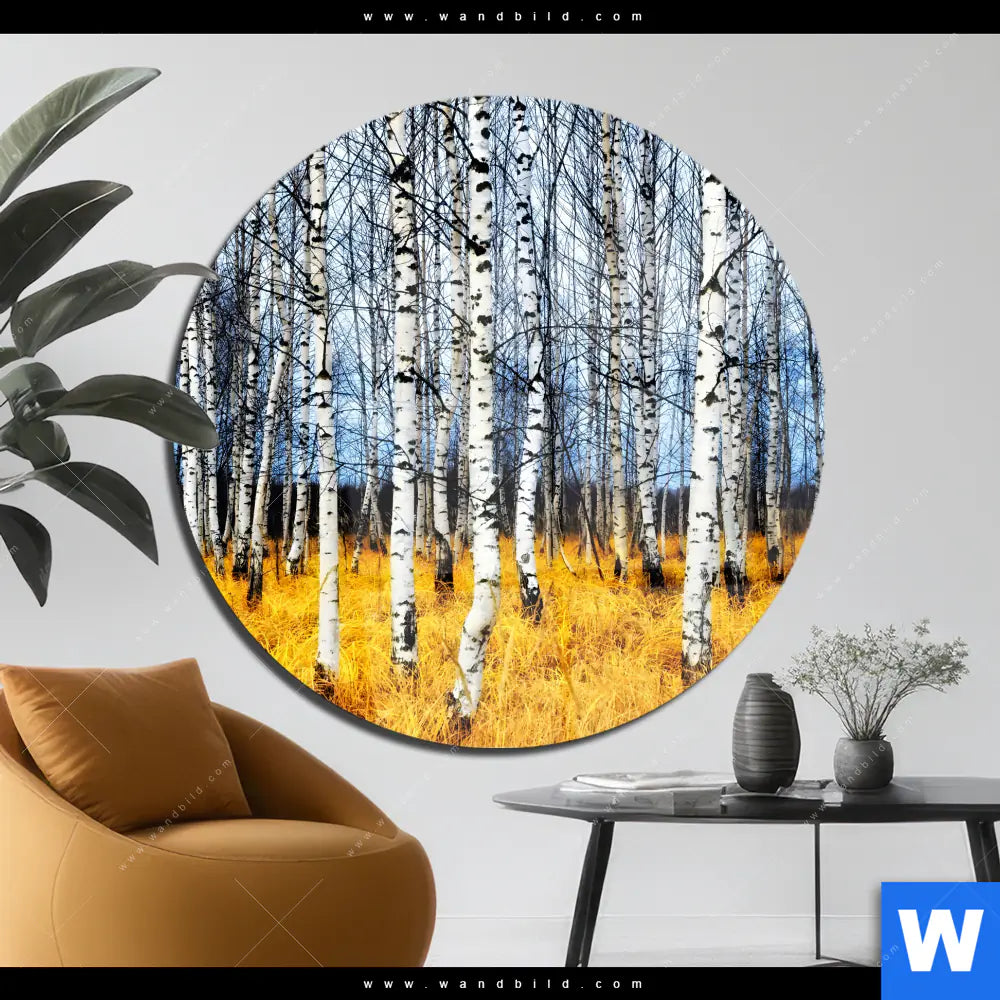 Acrylglasbild | Wald mit Birkenbäumen | Rund
