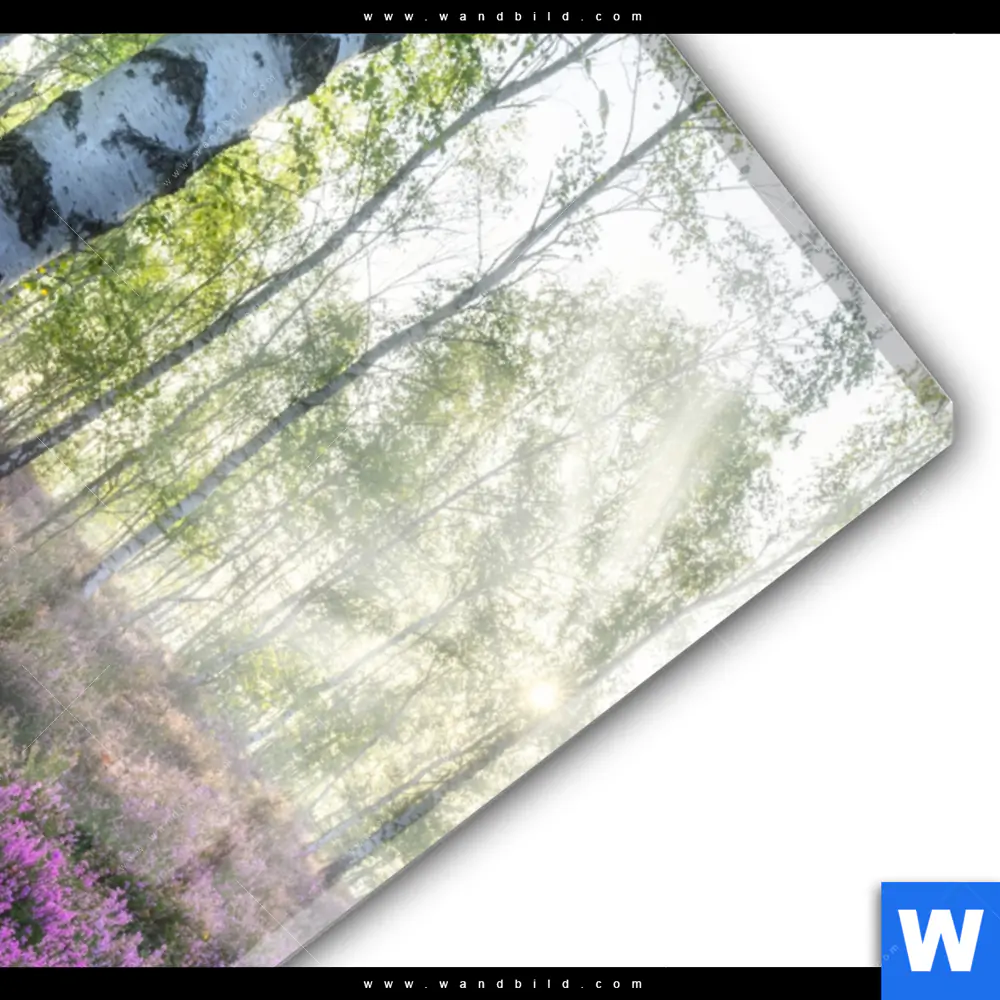 Acrylglasbild | Wald mit Heideblumen | Hochformat