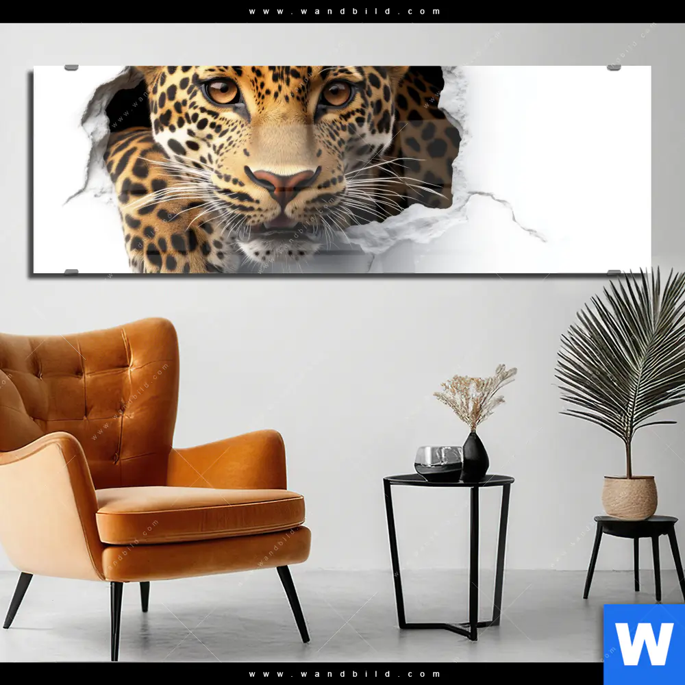 Acrylglasbild | Wanddurchbruch - Leopard | Panorama