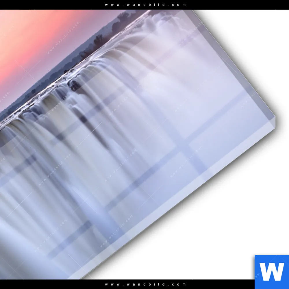 Acrylglasbild | Wasserfall bei Abendröte | Querformat