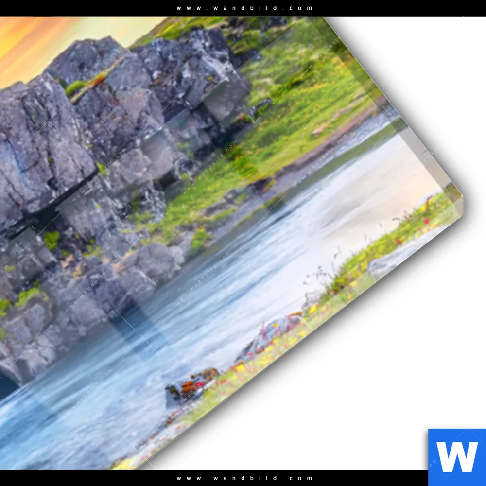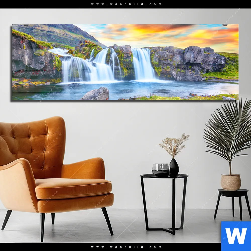 Acrylglasbild | Wasserfall bei Sonnenuntergang | Panorama