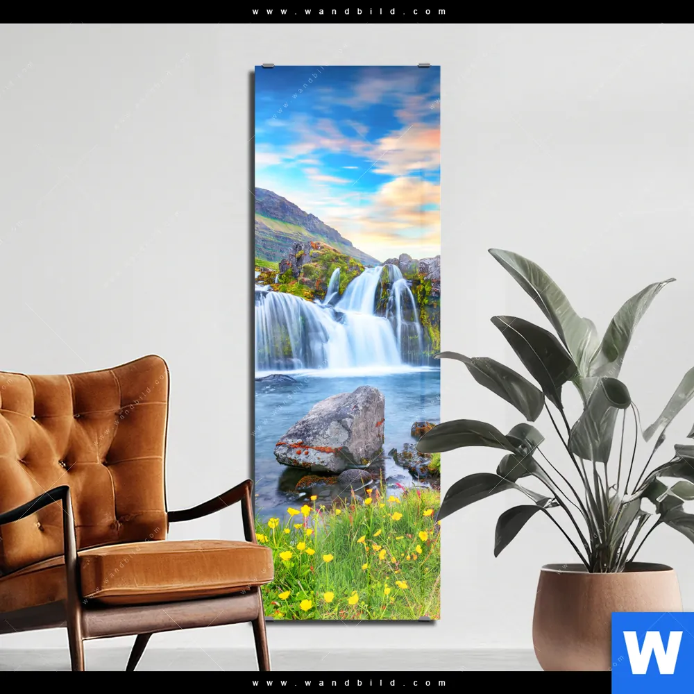 Acrylglasbild | Wasserfall bei Sonnenuntergang | Schmal