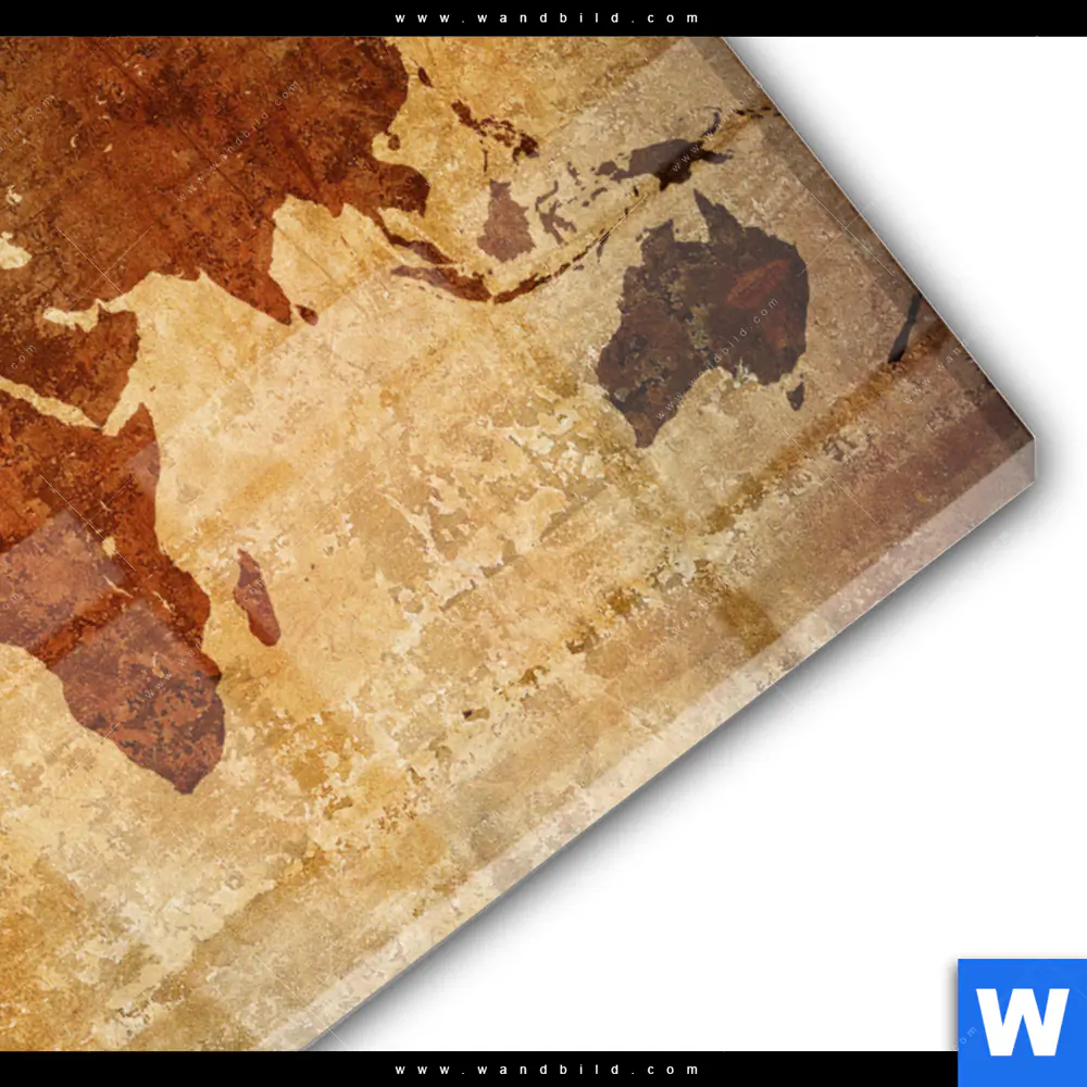 Acrylglasbild | Weltkarte Rostoptik | Querformat