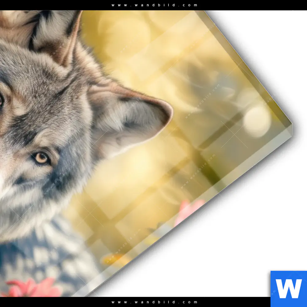 Acrylglasbild | Wolfsblick im Frühling | Hochformat