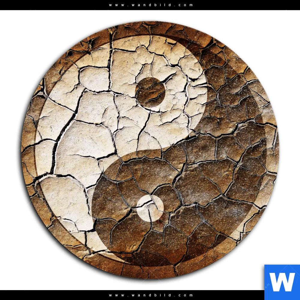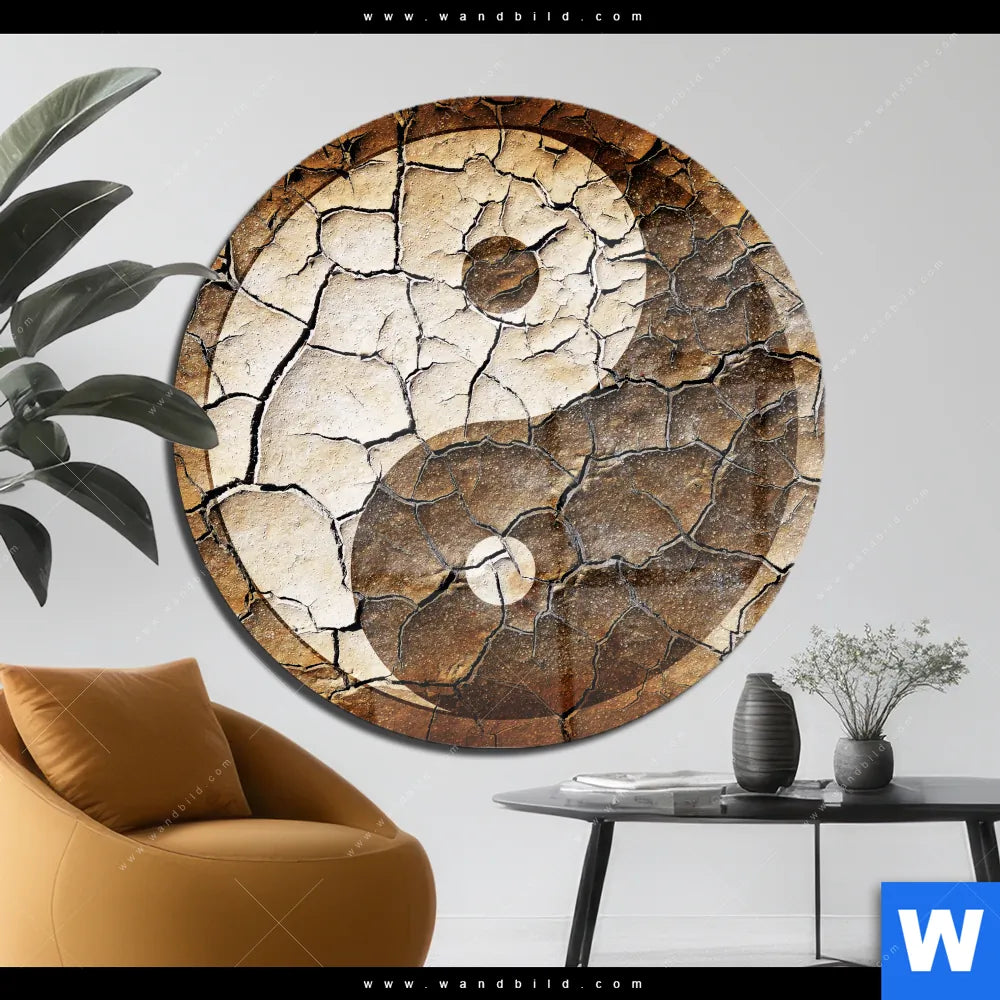 Acrylglasbild | Yin Yang auf rissiger Erde | Rund