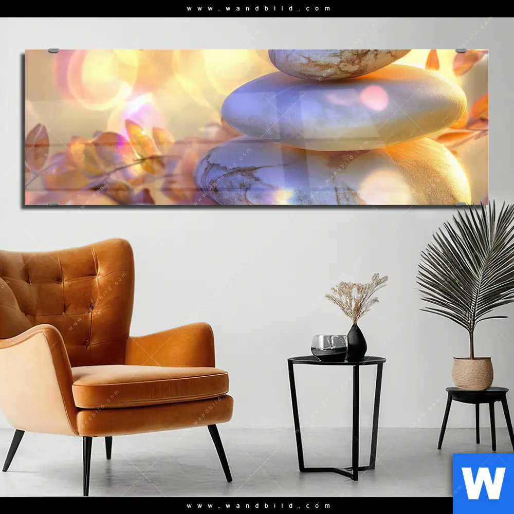 Acrylglasbild | Zen-Steine im Licht | Panorama