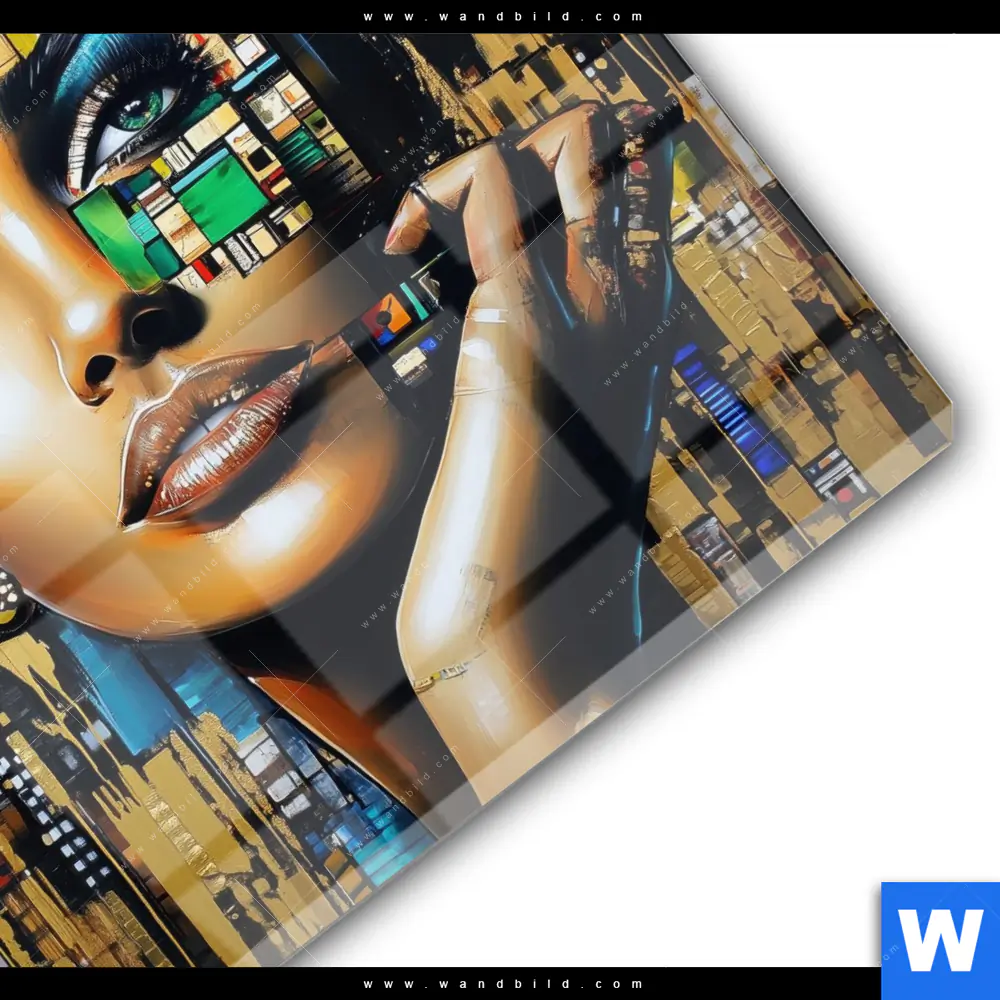 Acrylglasbild | Zoe - Mosaikgesicht im Großstadtlicht | Quadrat