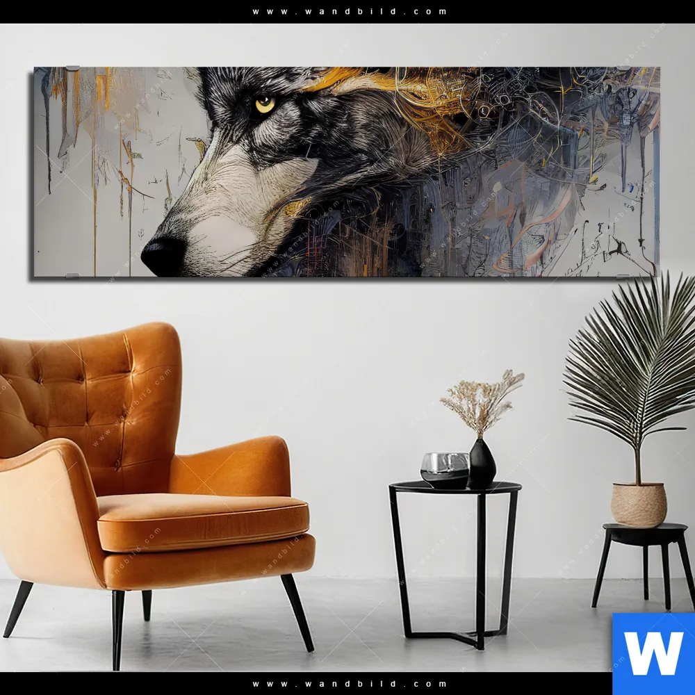 Alu-Dibond Bild | Abstrakter Wolf in Gold und Grau | Panorama