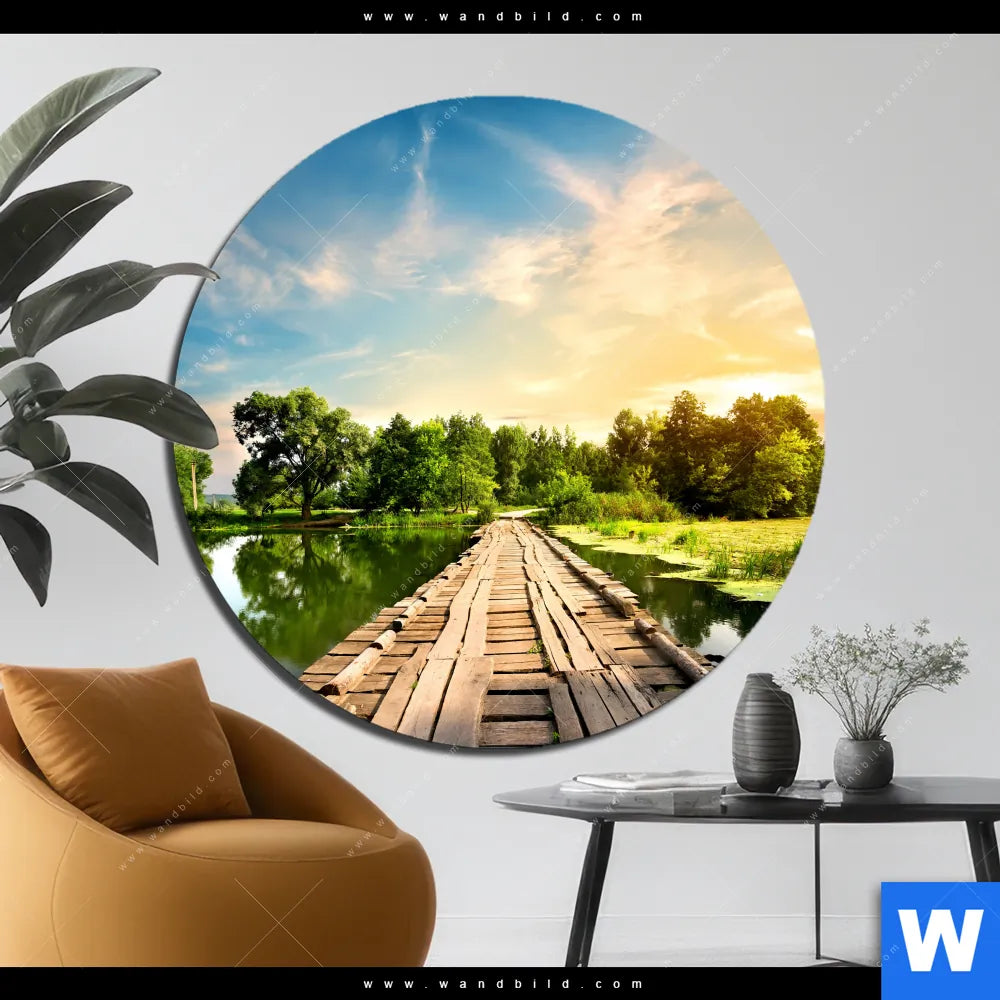 Alu-Dibond Bild | Alte Brücke am Fluss | Rund