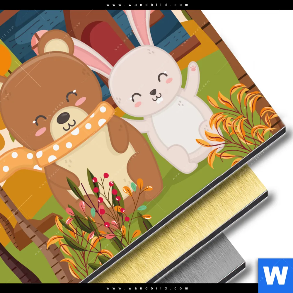 Alu-Dibond Bild | Bär & Häschen | Quadrat
