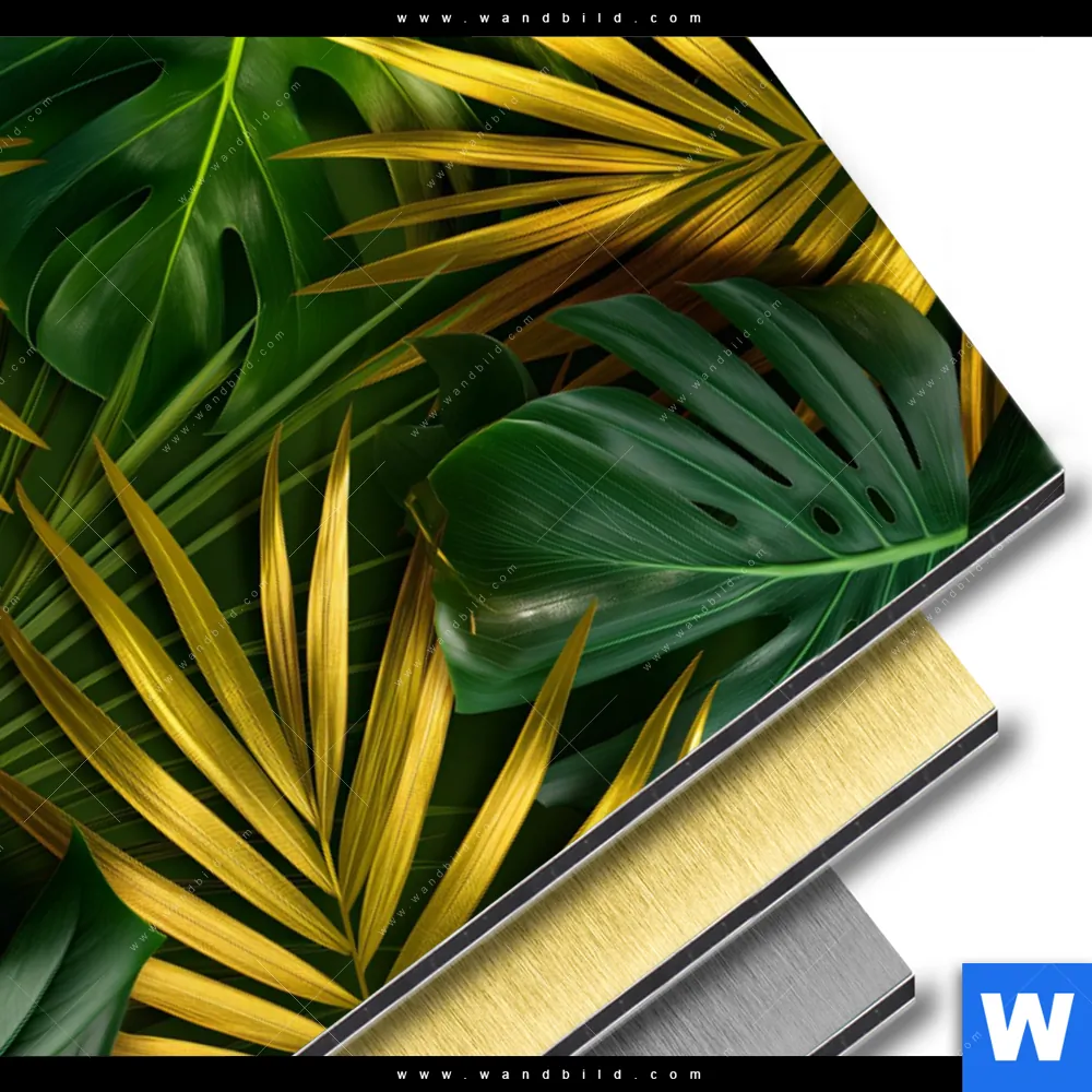Alu-Dibond Bild | Blätter Gold Grün | Hochformat