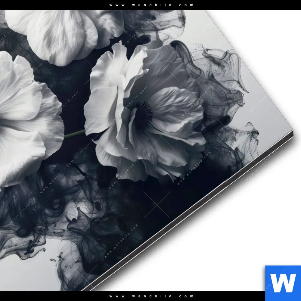 Alu-Dibond Bild | Blumen im schwarzen Farbnebel | Quadrat