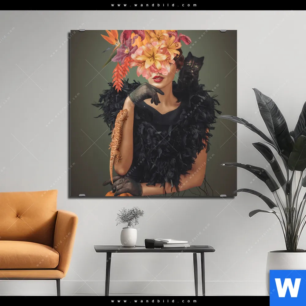 Alu-Dibond Bild | Blumenportrait einer Frau | Quadrat