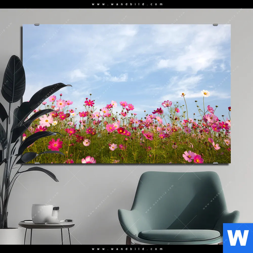 Alu-Dibond Bild | Blumenwiese bei strahlend blauem Himmel | Querformat