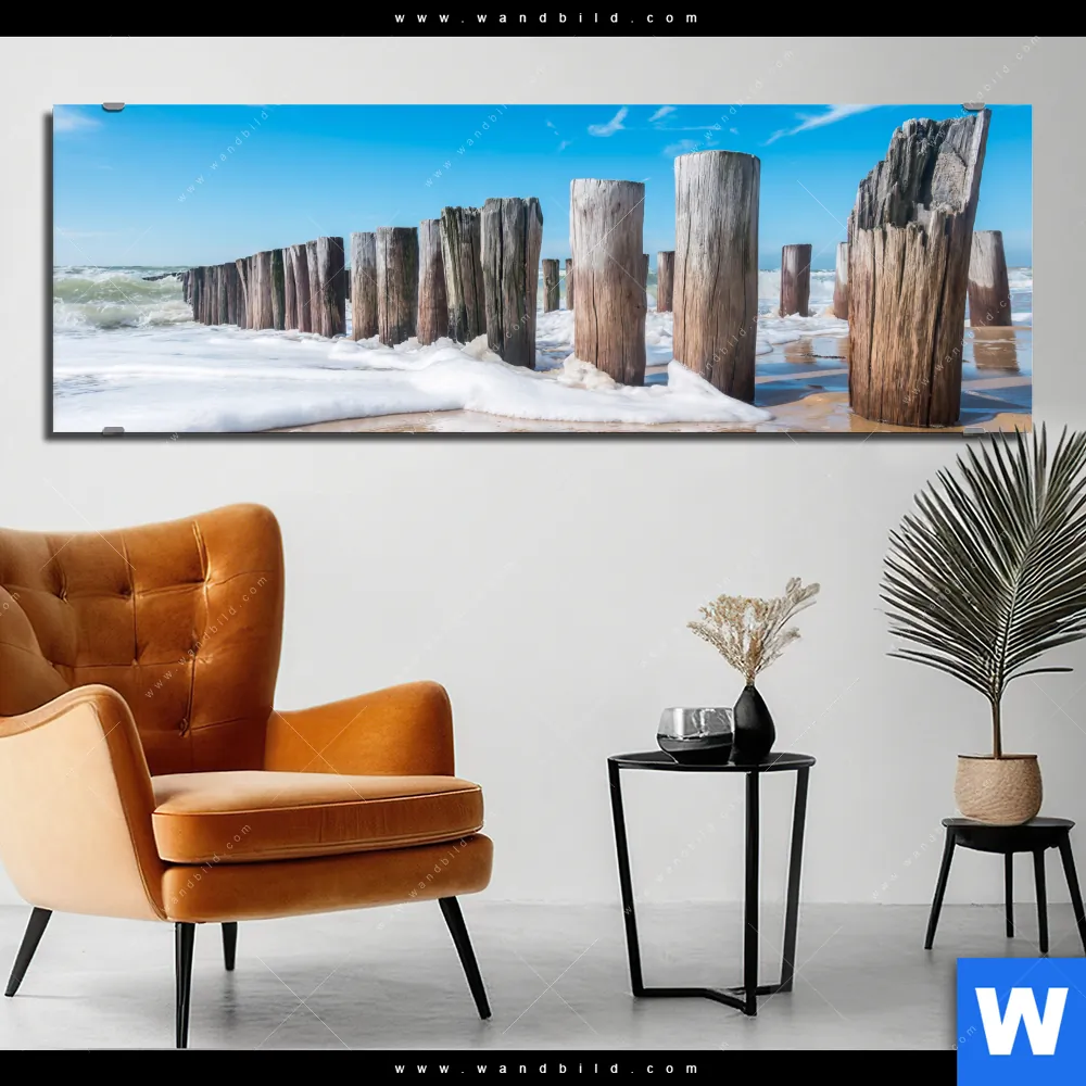 Alu-Dibond Bild | Buhnen in Wellen am Strand | Panorama
