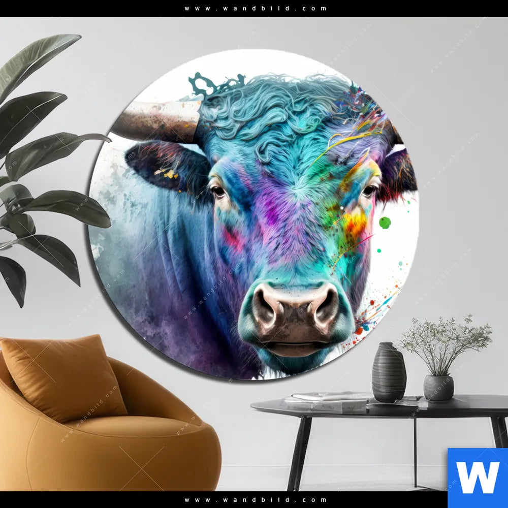 Alu-Dibond Bild | Bunter Stierkopf | Rund