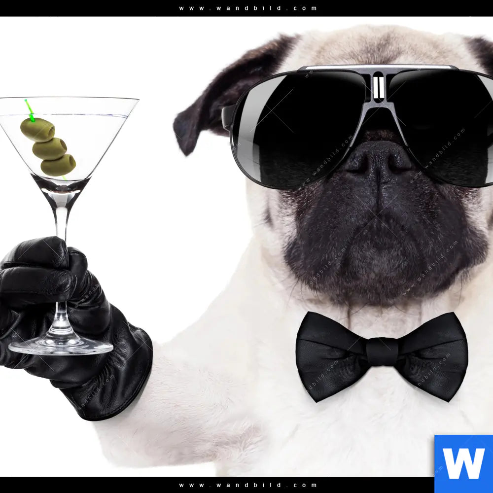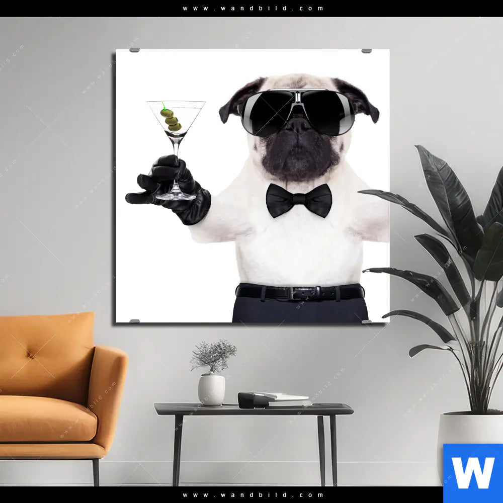 Alu-Dibond Bild | Cooler Mops mit Martini | Quadrat