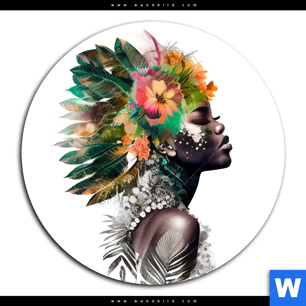 Alu-Dibond Bild | Doppelbelichtung Porträt einer afrikanischen Frau | Rund