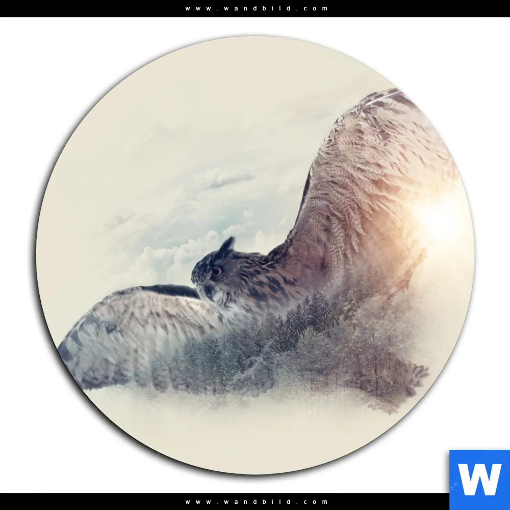 Alu-Dibond Bild | Eule & Wald No.2 | Rund