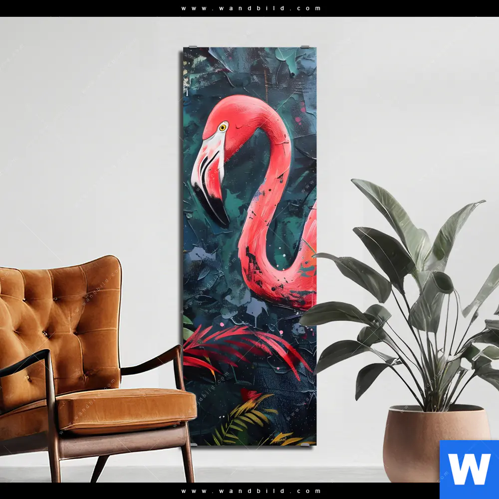 Alu-Dibond Bild | Flamingo - Dschungel Eleganz | Schmal