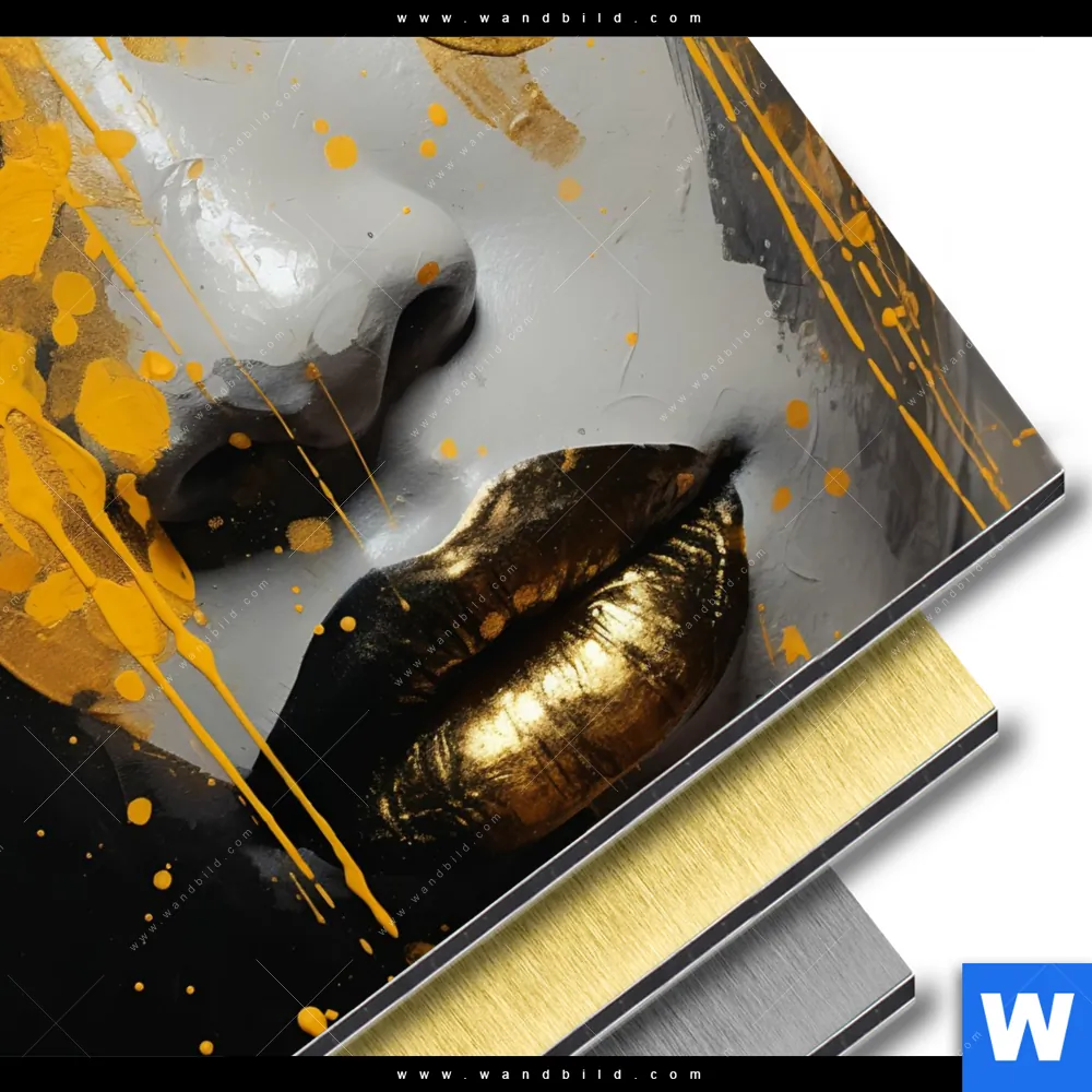 Alu-Dibond Bild | Frau mit Goldfarbe | Quadrat