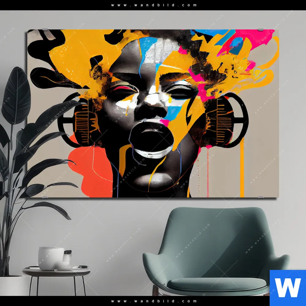 Alu-Dibond Bild | Frau mit Kopfhörern | Querformat