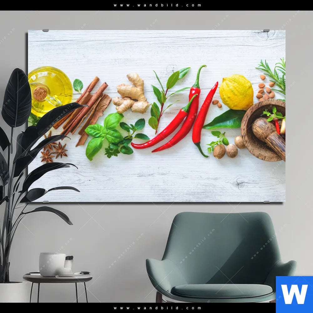Alu-Dibond Bild | Frische Kräuter & Gewürze | Querformat