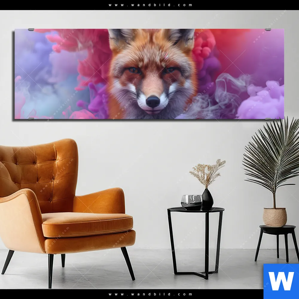 Alu-Dibond Bild | Fuchs in Farbnebel | Panorama