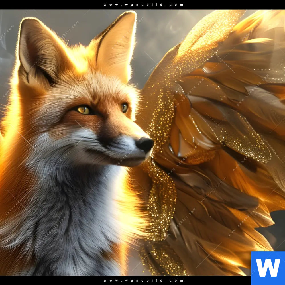Alu-Dibond Bild | Fuchs mit goldenen Flügeln | Quadrat