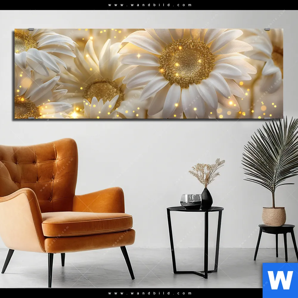 Alu-Dibond Bild | Funkelnde Blumen in Gold | Panorama