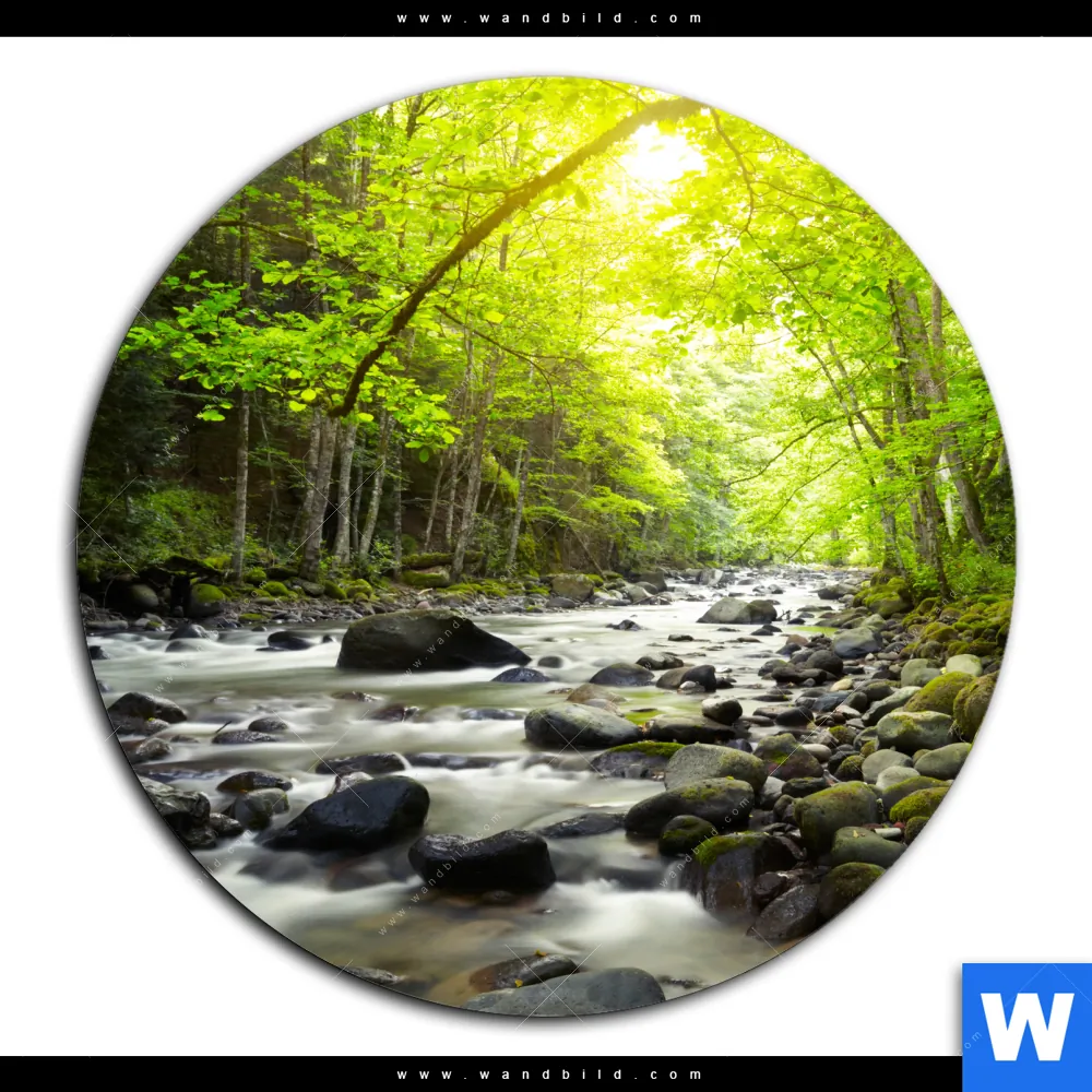 Alu-Dibond Bild | Gebirgsfluss im Wald | Rund
