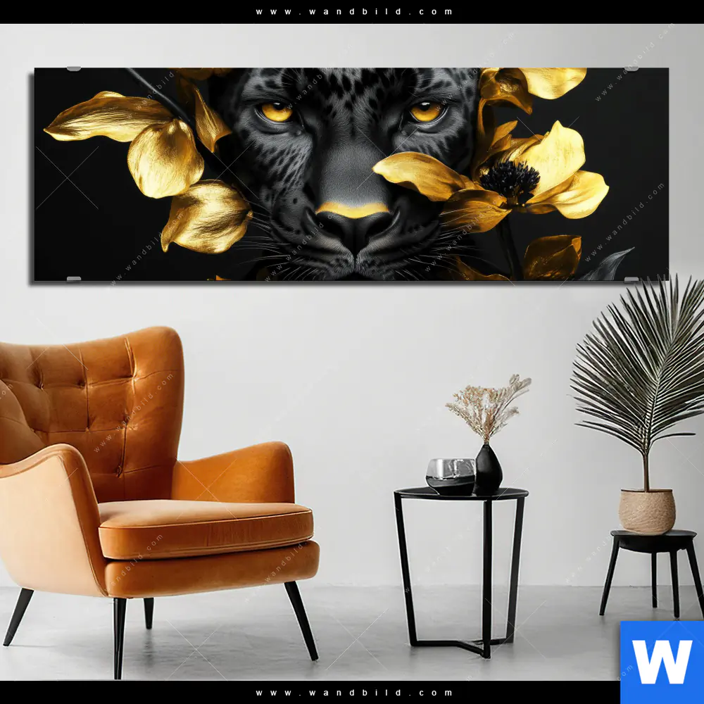 Alu-Dibond Bild | Goldblumen & Panther | Panorama