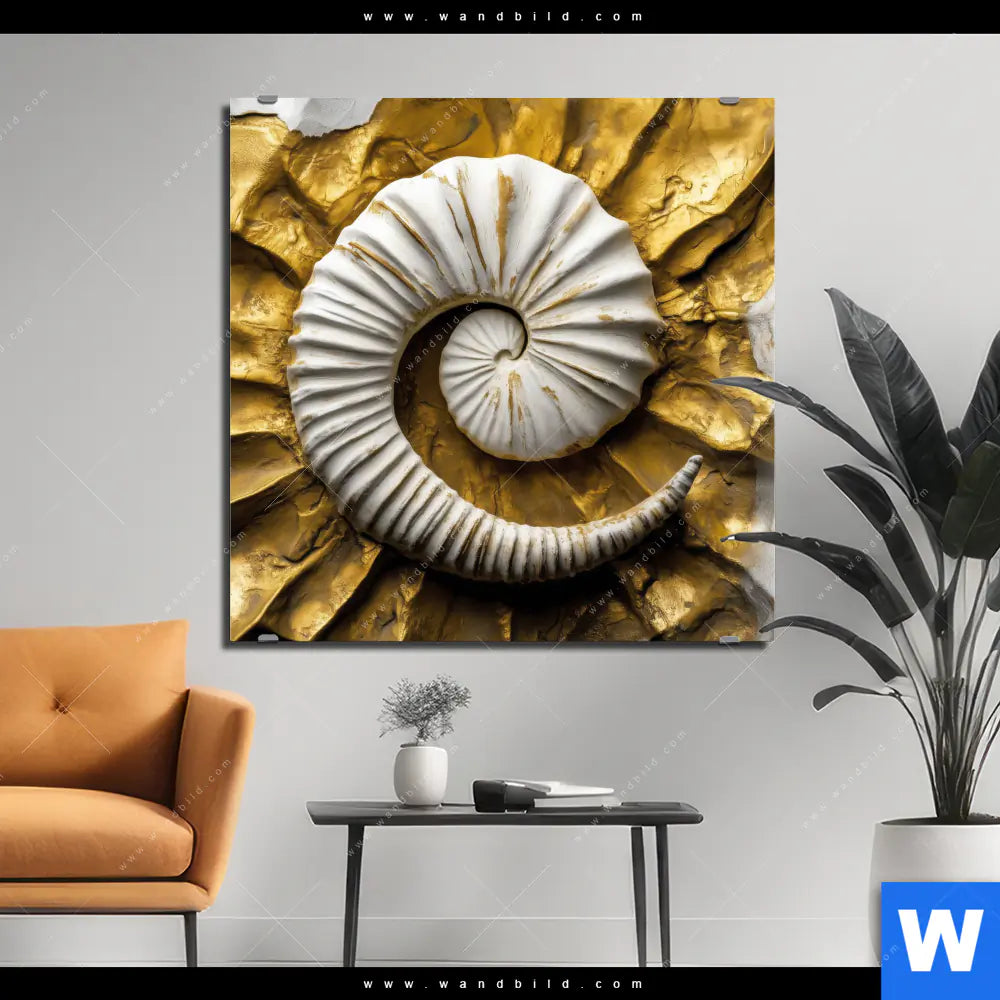 Alu-Dibond Bild | Goldene Muschel-Kunst | Quadrat