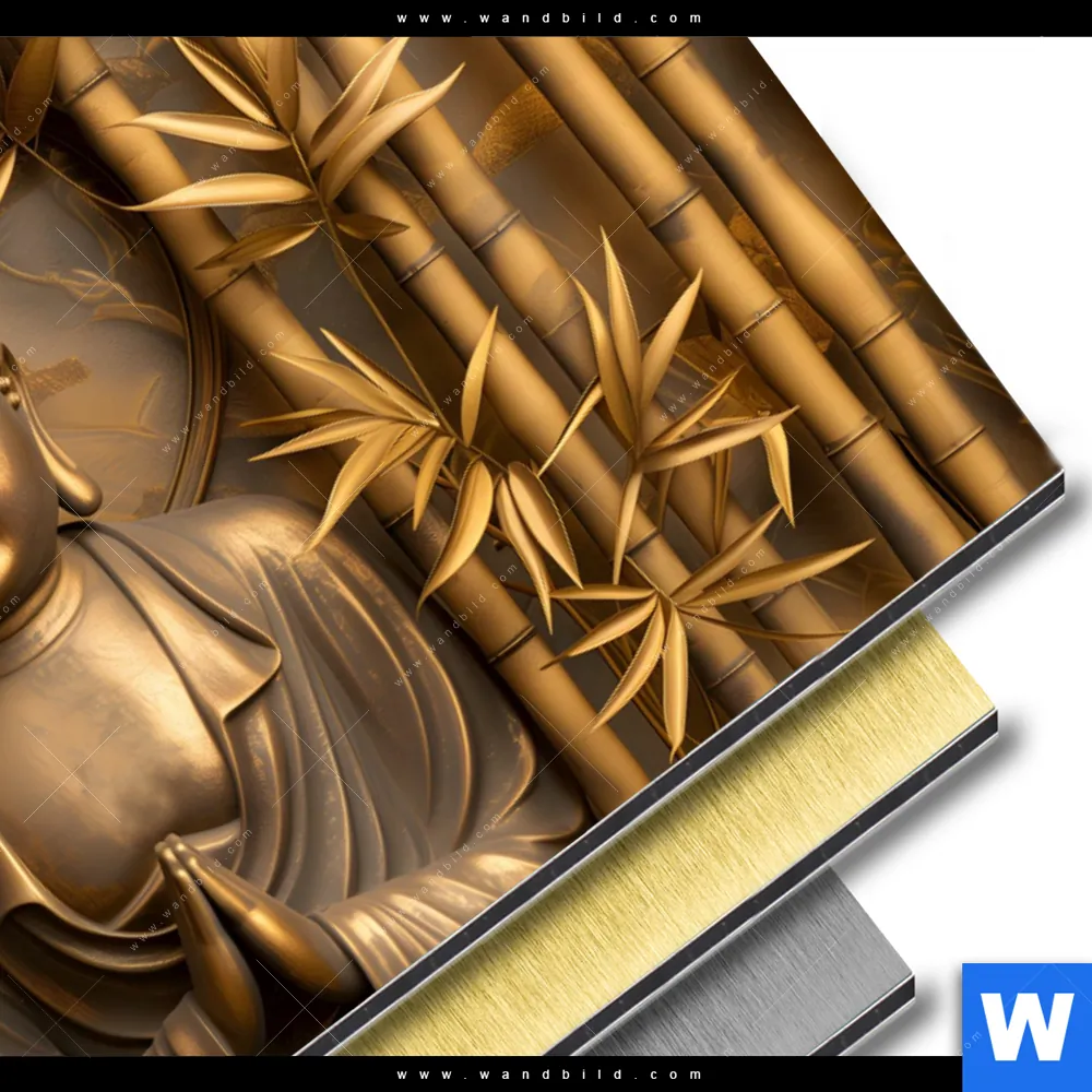 Alu-Dibond Bild | Goldener Buddha im Bambuswald | Querformat
