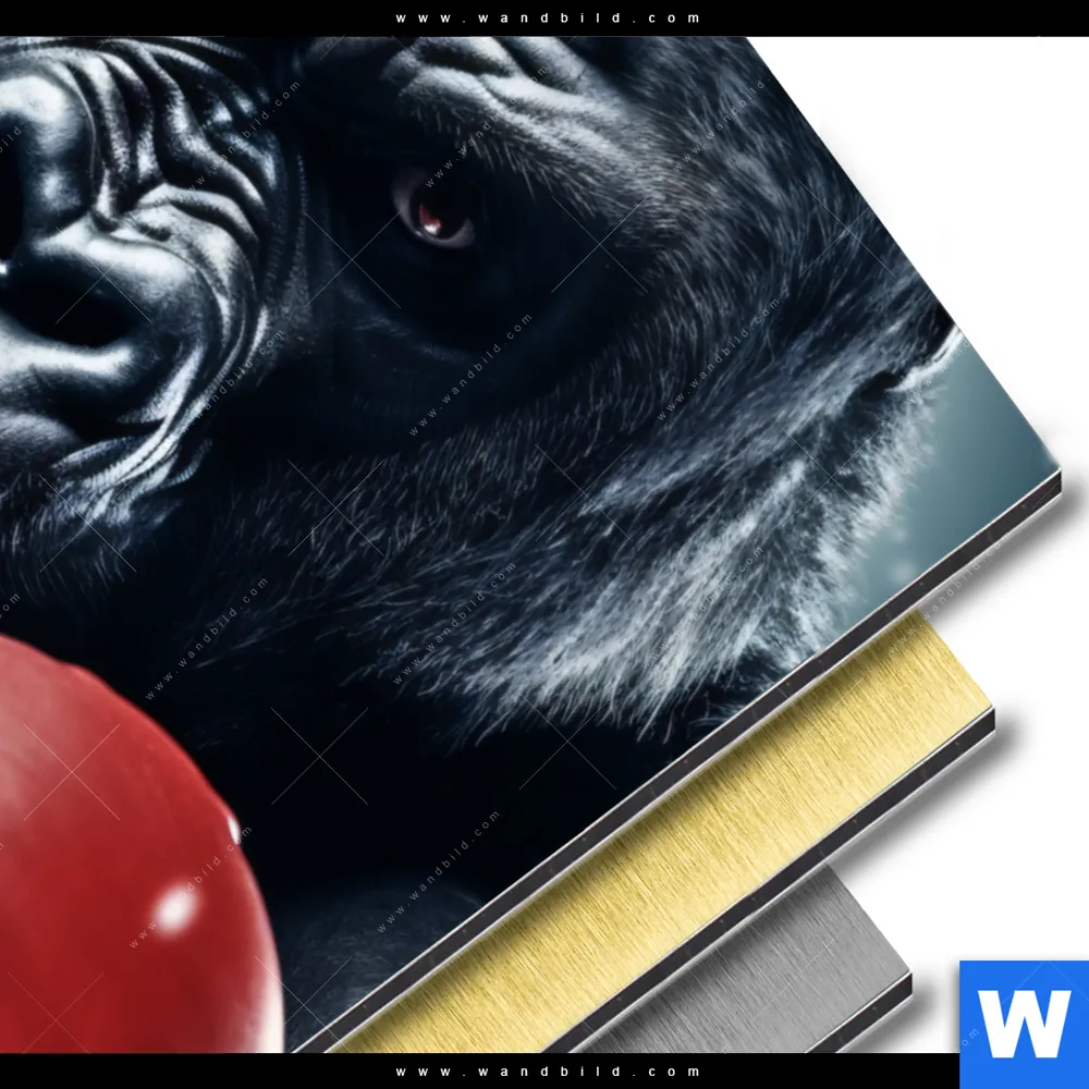 Alu-Dibond Bild | Gorilla mit roten Boxhandschuhen | Hochformat