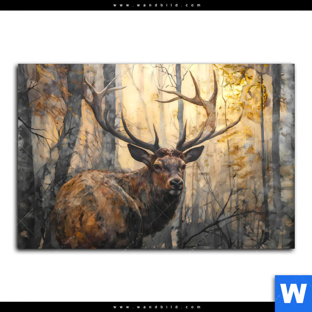 Alu-Dibond Bild | Hirsch im Morgenlicht | Querformat
