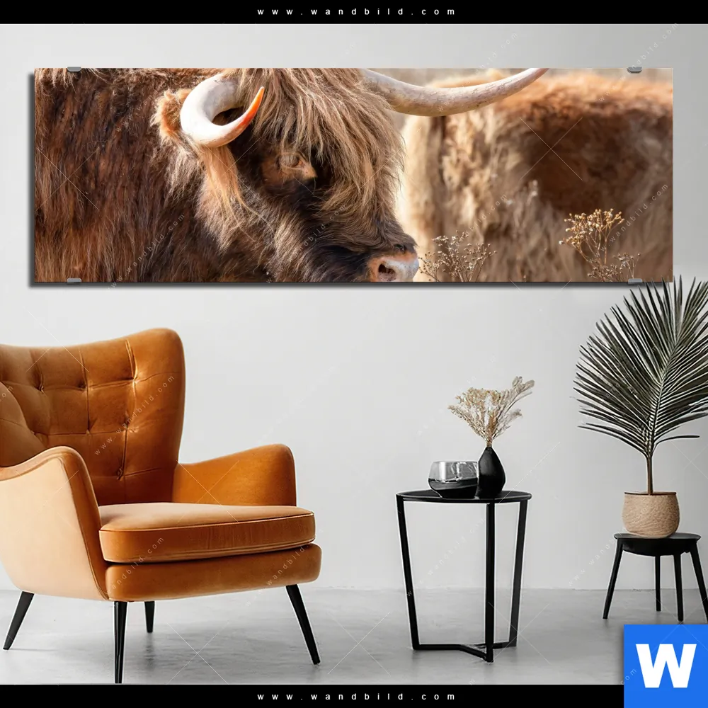 Alu-Dibond Bild | Hochlandrind auf Weide | Panorama