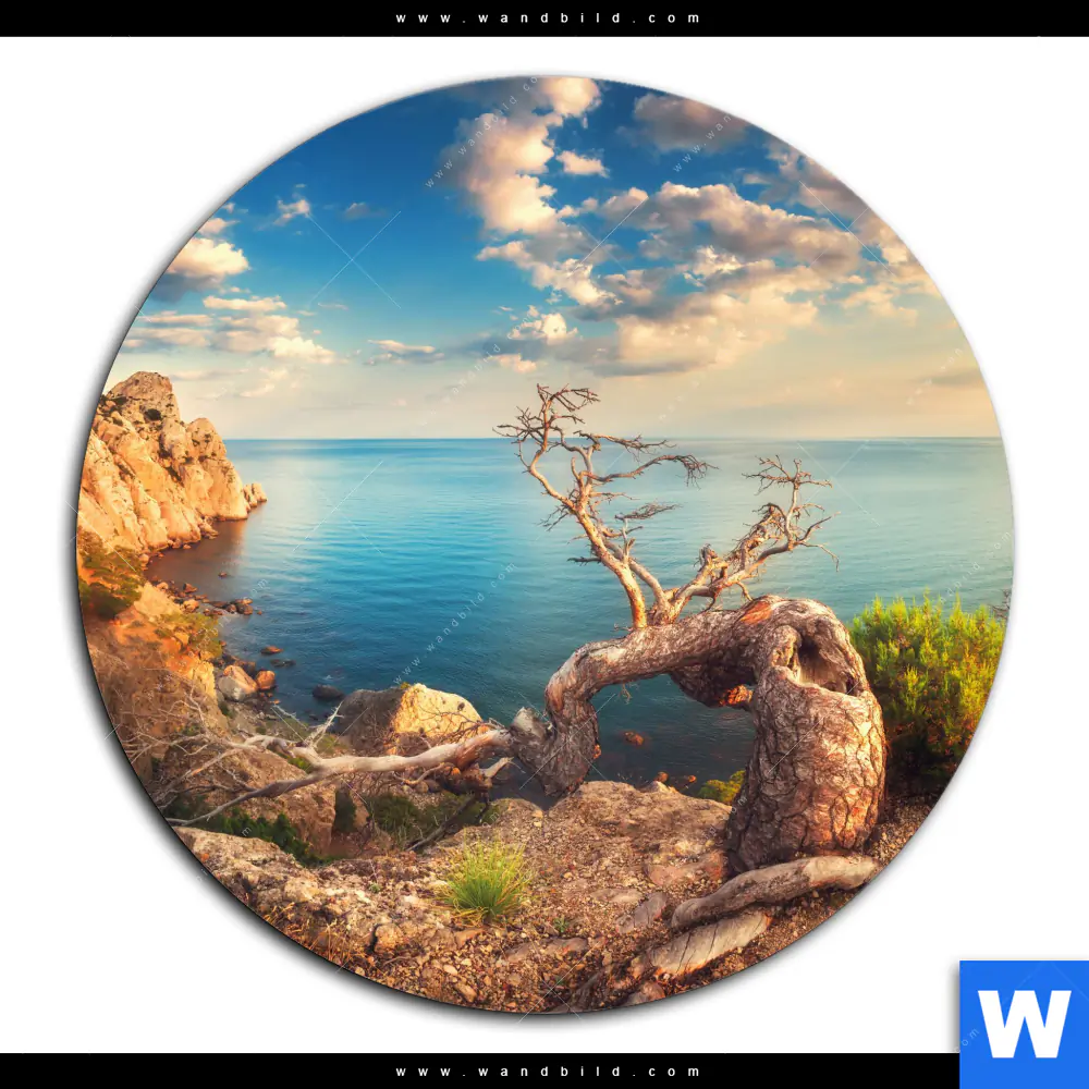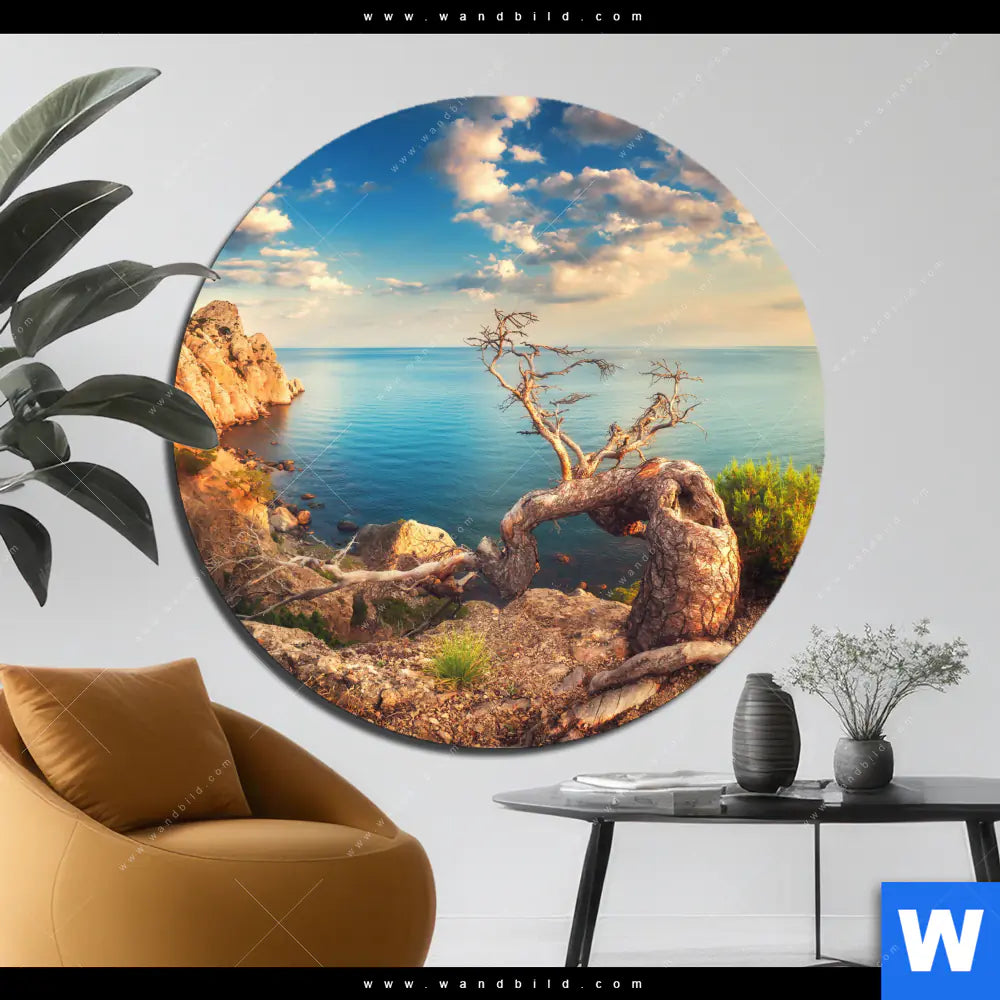Alu-Dibond Bild | Küstenlandschaft mit altem Baum | Rund