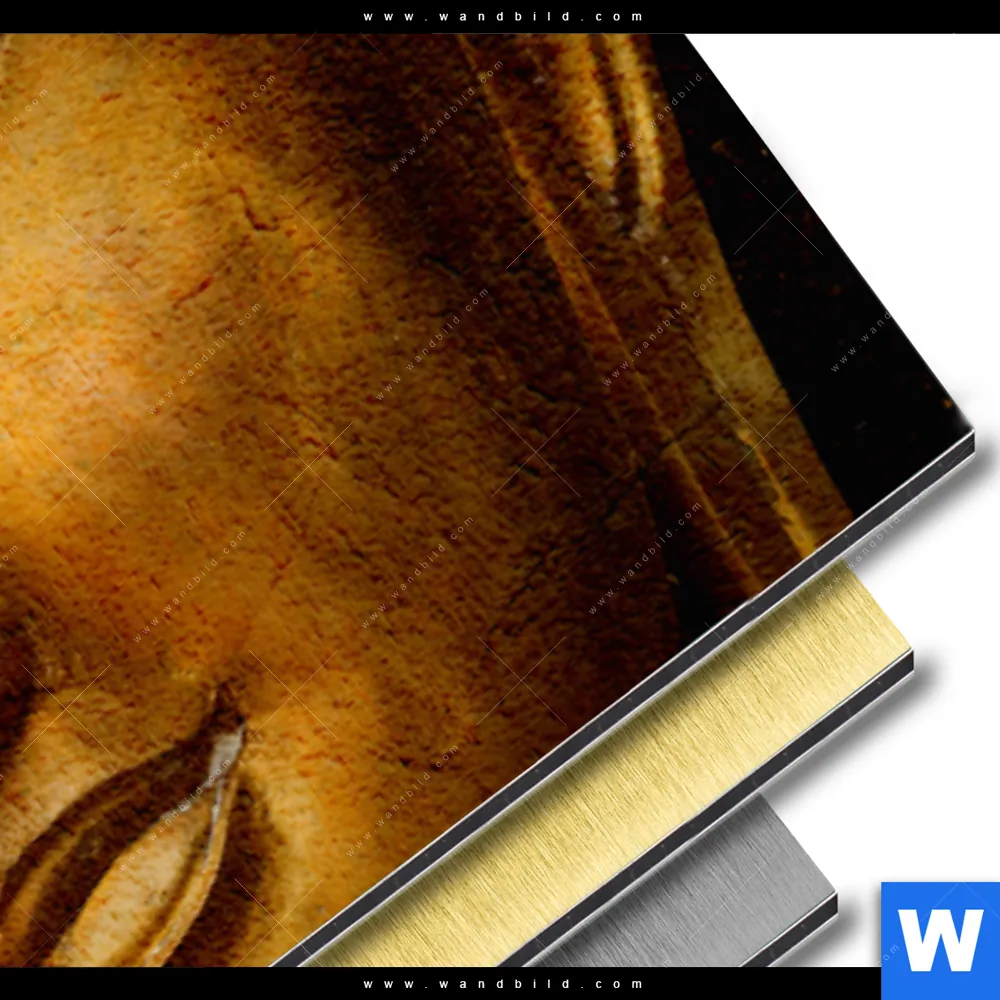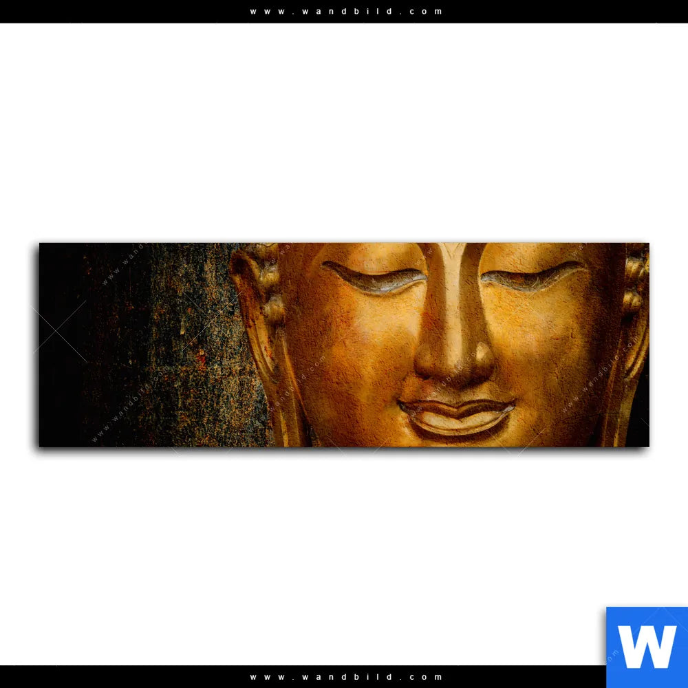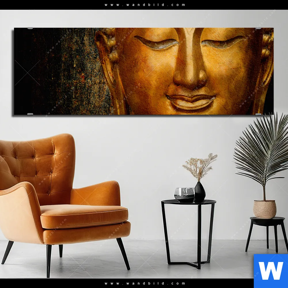 Alu-Dibond Bild | Lächelnder Buddha in Gold | Panorama