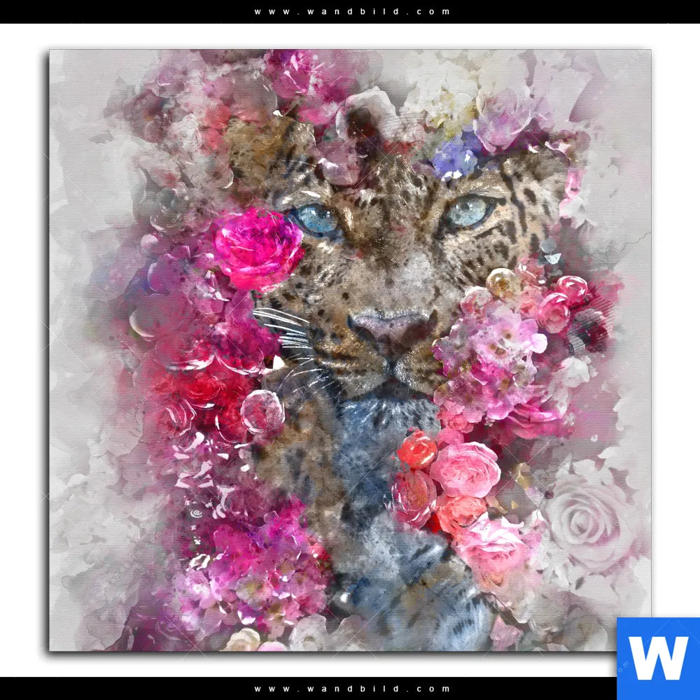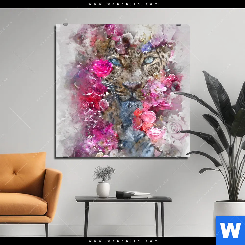 Alu-Dibond Bild | Leopard & Blumen | Quadrat