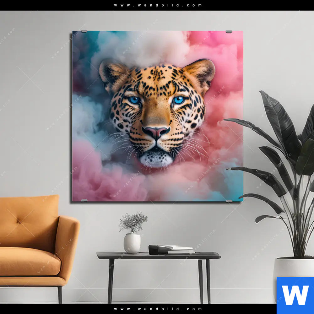 Alu-Dibond Bild | Leopard im Farbnebel | Quadrat